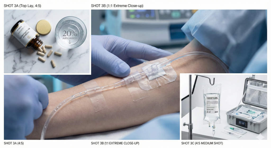The IV difference: 100% bioavailability. Zero digestive degradation. Direct cellular delivery.