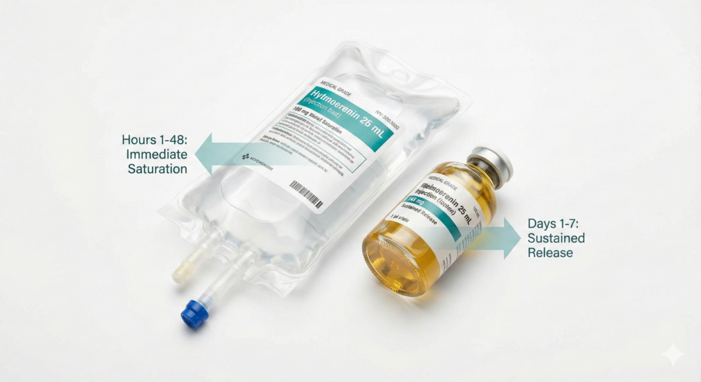 The injection is for duration. It ensures the fat-mobilizing nutrients stay active in your system long after the IV fluids have been processed. Without it, you lose the metabolic support by Wednesday or Thursday.