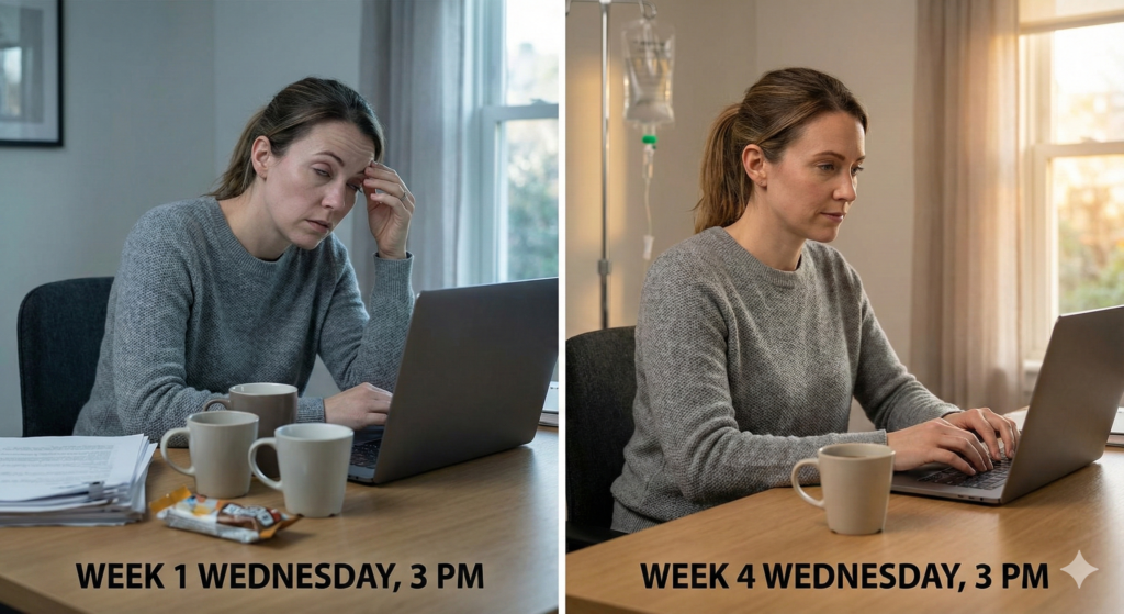 But by Wednesday afternoon, something shifts. The brain fog creeps back in. The hunger becomes impossible to ignore. Your energy crashes so hard you can barely make it through a 3pm meeting.